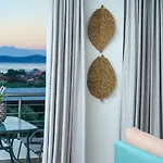 Die 1-Zimmer- Eleonas Apartment verfügt über Parkplätze und eine Terrasse mit Aussicht aufs Meer.